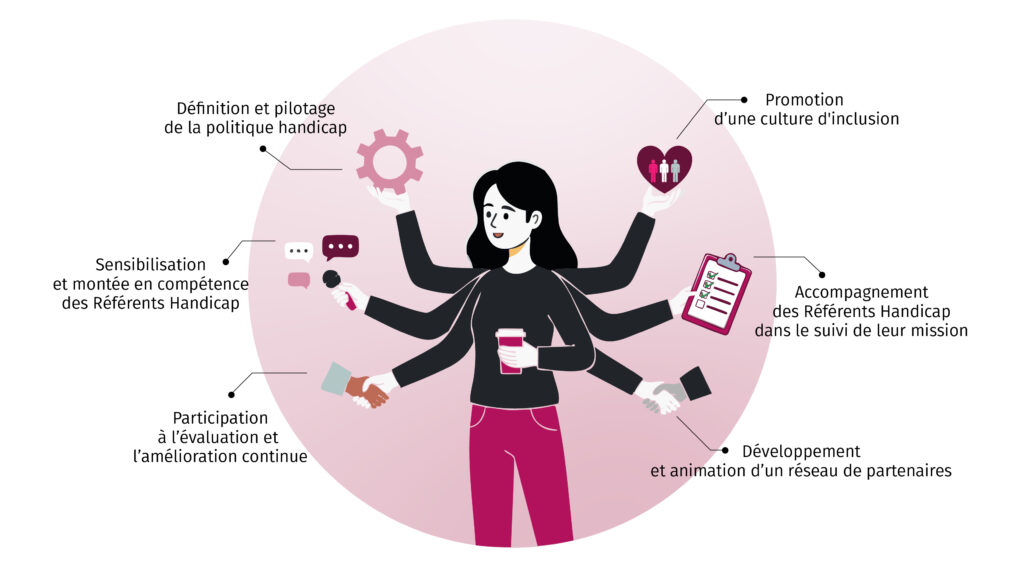 Il encourage une culture de l’inclusion : fait changer les regards et lever les préjugés . Il veille à la montée en compétences des référents handicaps.